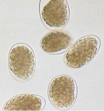 mediante el examen coproscópico, a través de la visualización de los
